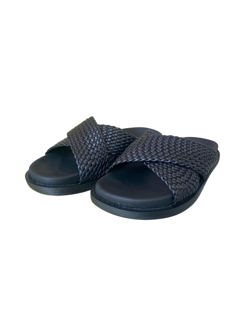 Sandalo in pelle con fascia intrecciata che avvolge il collo del piede.